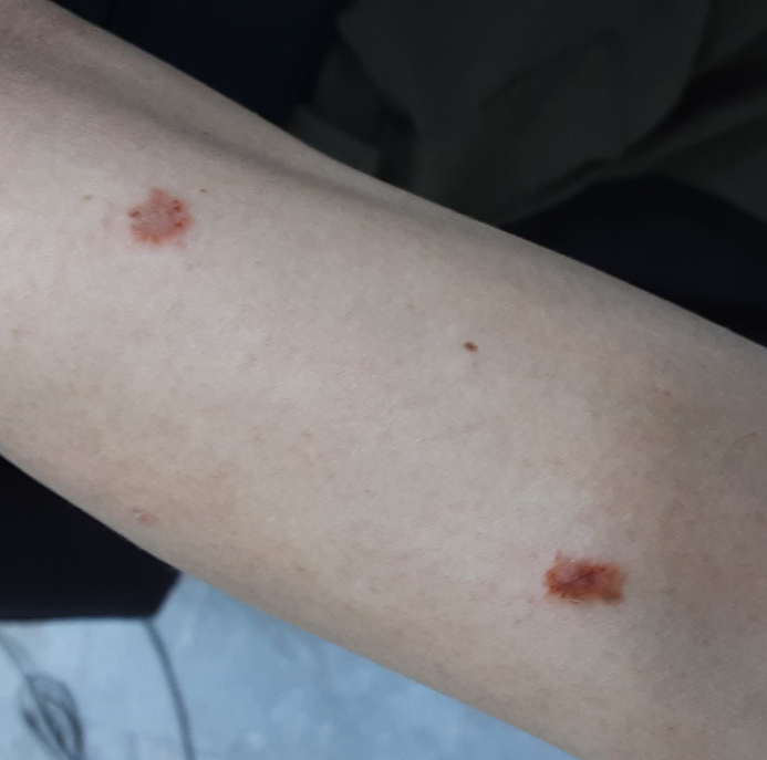 링웜이 사람에게 감염되면 위와 같은 발적이 생기며 해당 부위에는 극심한 가려움증을 동반합니다. 간혹 통증도 있을 수 있고 각질, 인설, 물집이 잡히기도 합니다. 해당 병변이 털이 나는 부위에 생기게 되면 탈모현상도 발생가능합니다. 머리에 생기면 원형탈모도 가능합니다.