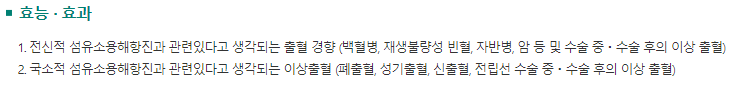 약 자체의 기능이 지혈제 기능이기 때문에 혈전이 있는 환자나 혈전증을 일으킬 수 있는 환자, 지혈제(트롬빈) 등을 복용 중인 환자는 사용하면 안 됩니다.
