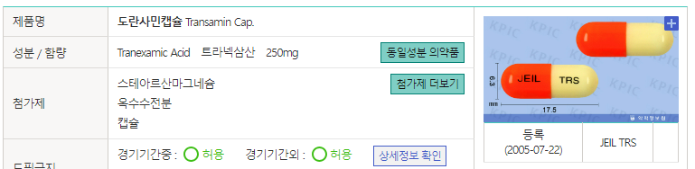 도란사민은 트라넥삼산(tranexamic acid)의 성분을 가진 약입니다.