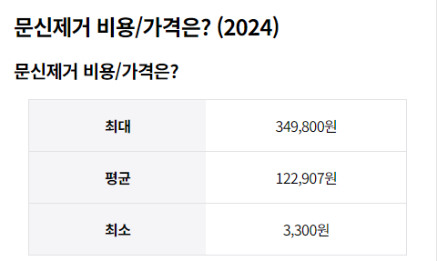 문신 지우는 가격, 비용