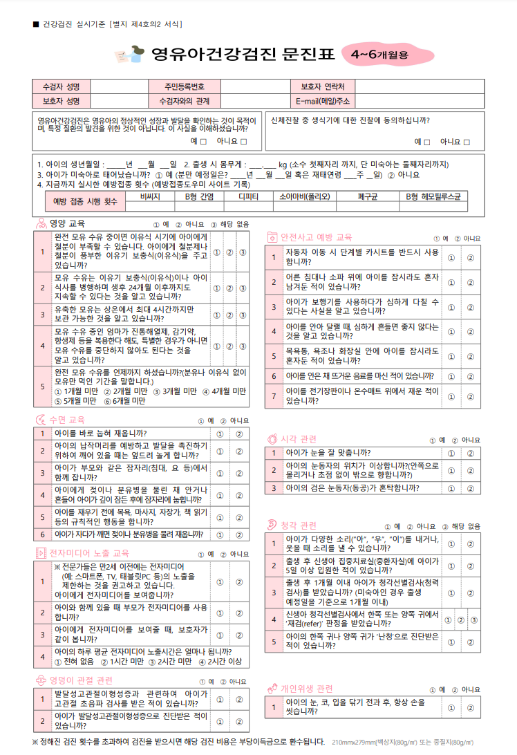 문진표의 항목을 하나씩 보면서 우리 자녀가 잘 자라고 있는지 어떤 부분을 눈여겨 봐야할지 알 수 있습니다.